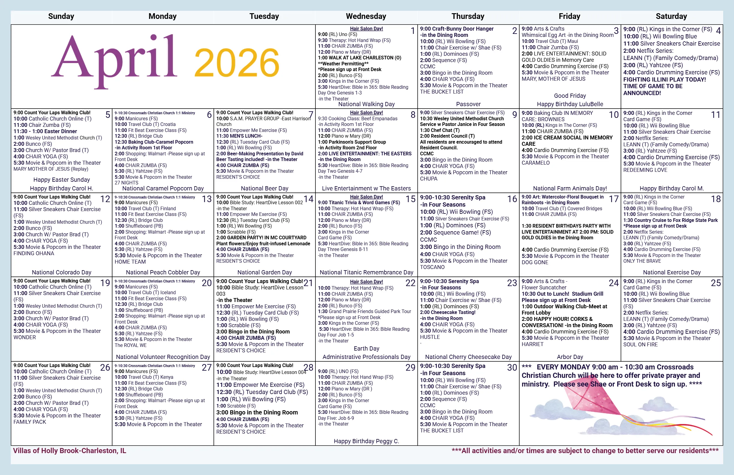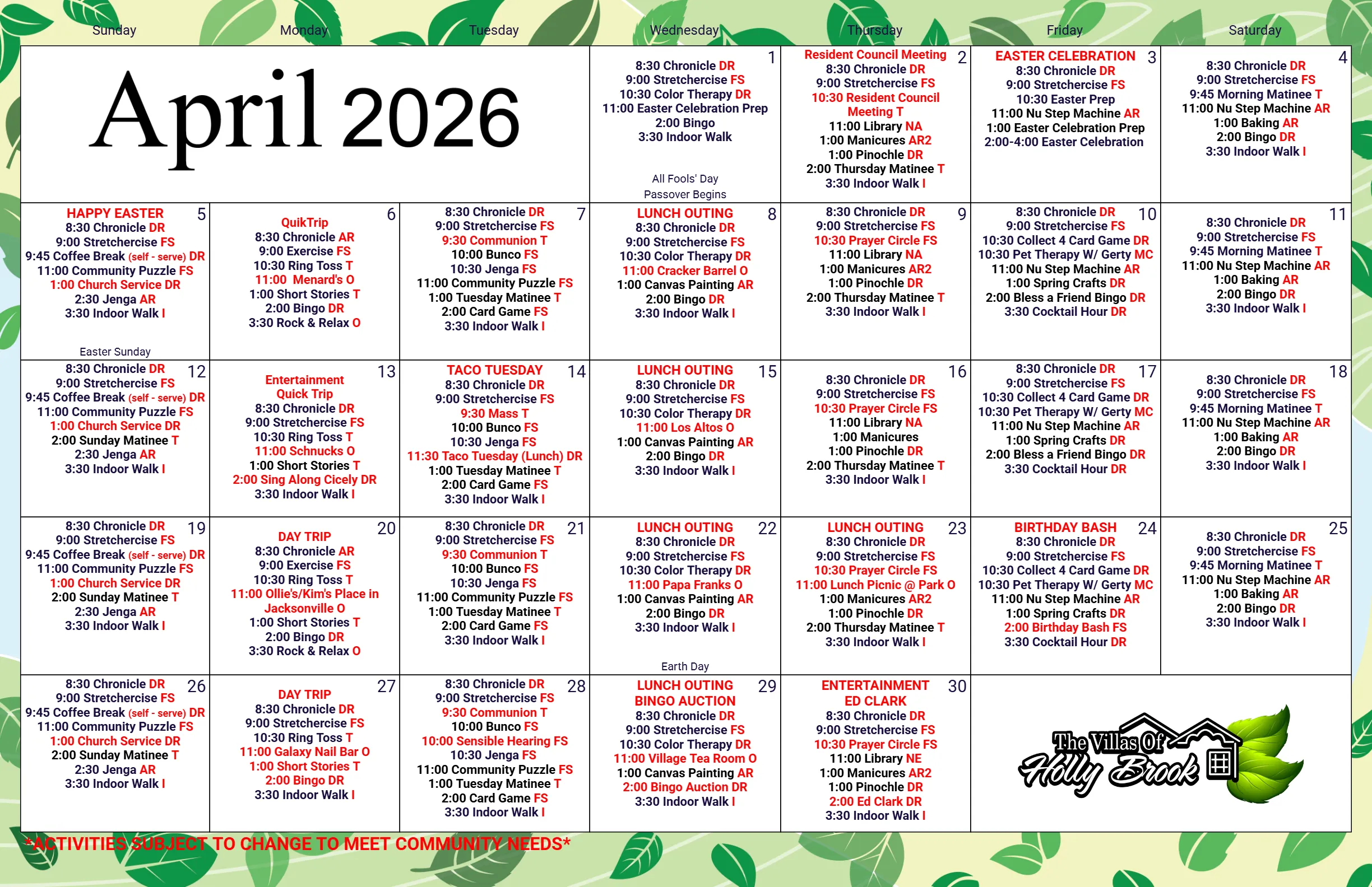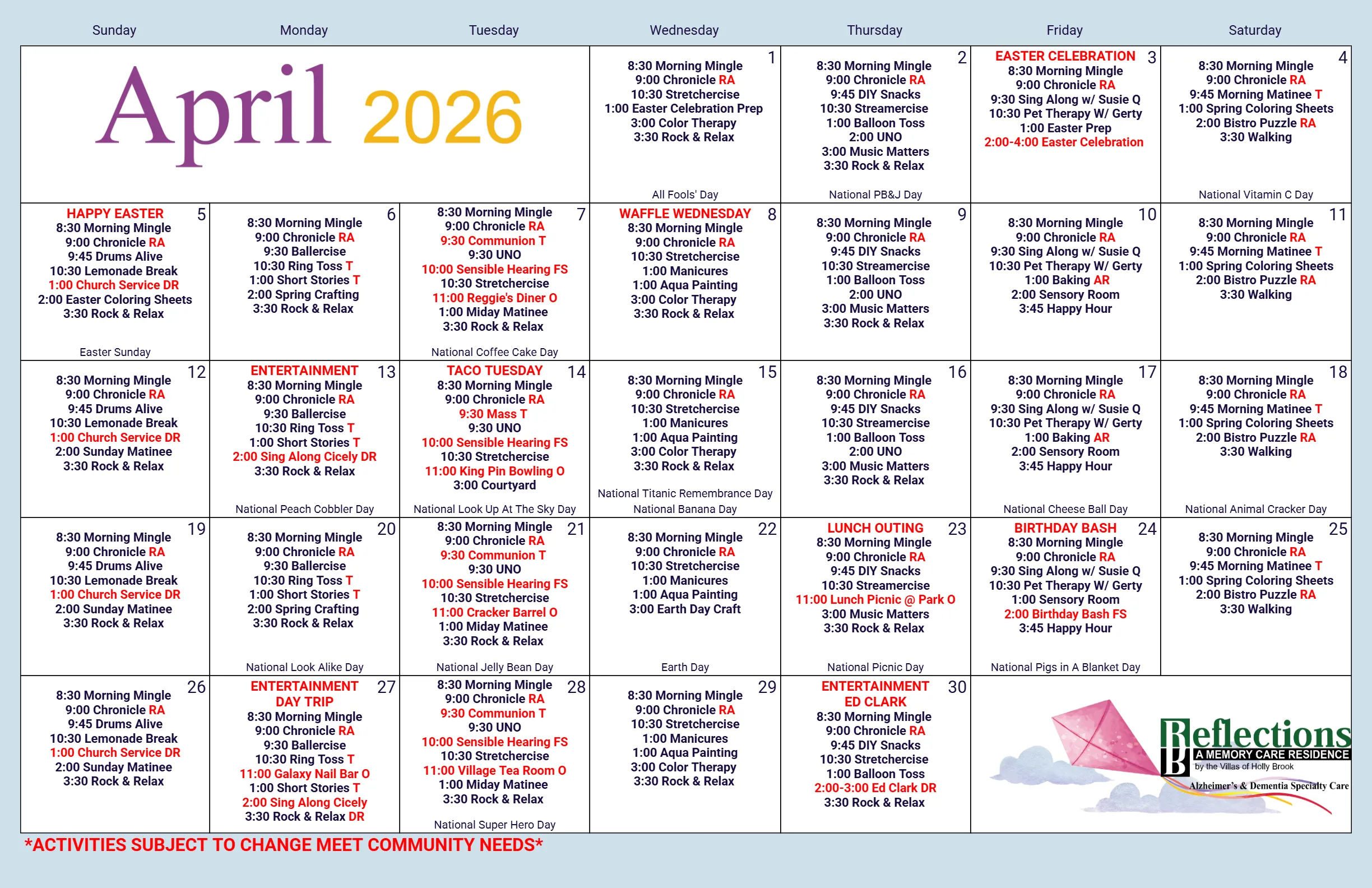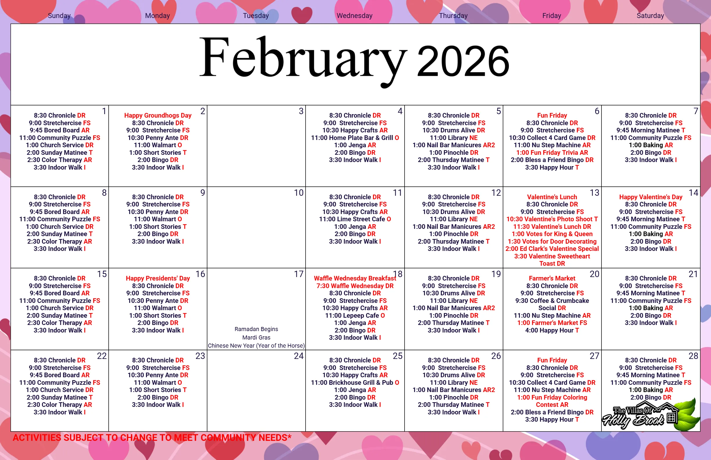 Find out what’s happening this month at your local community!