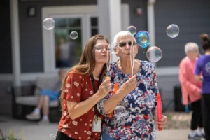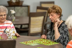 SENIOR LIVING Why Socialization is Important in Memory Care Resident enjoying a coloring activity SHARE Making the decision to move a loved one into memory